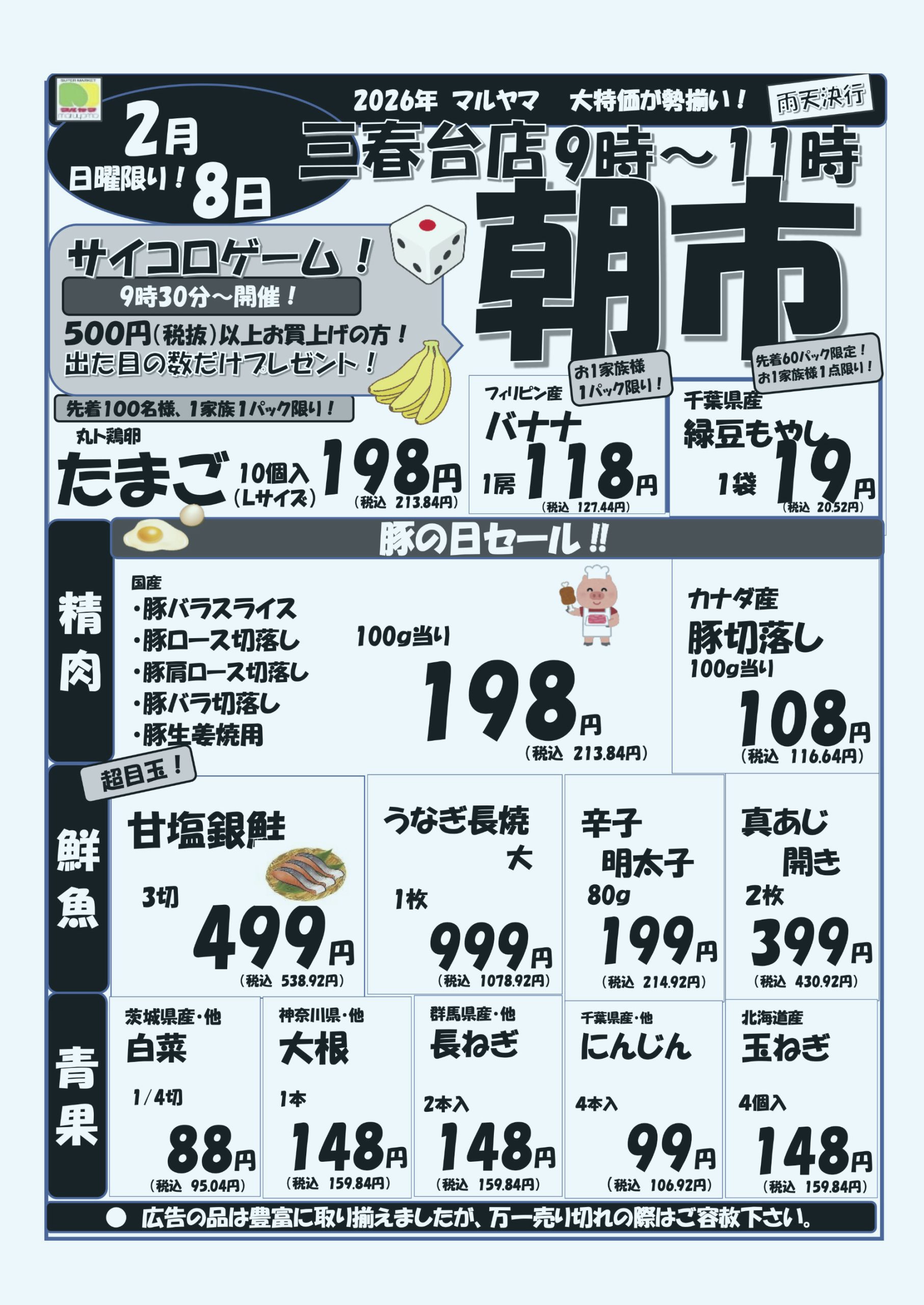 2/8 朝市 三春台店 9時~11時