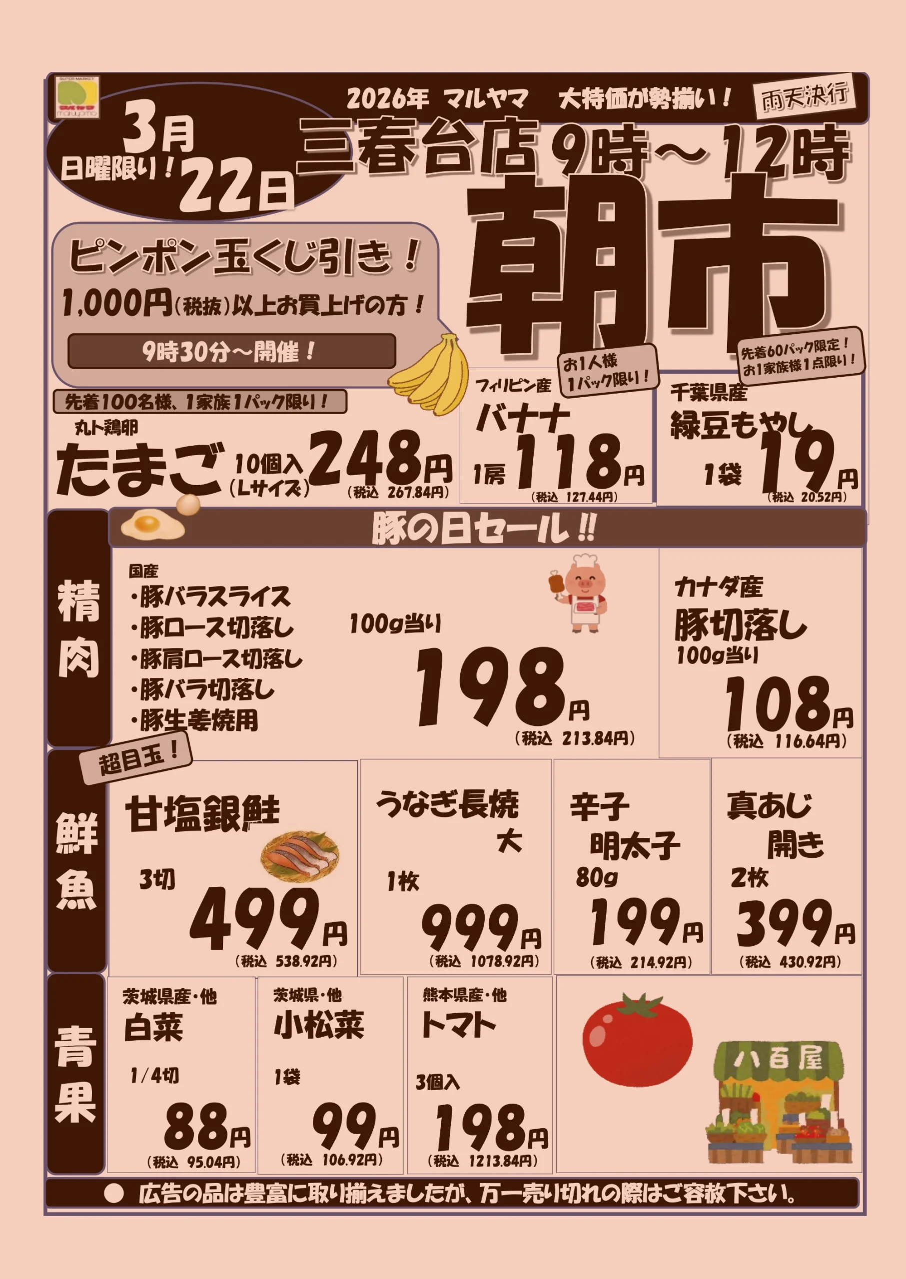 3/22 朝市 三春台店 9時~11時