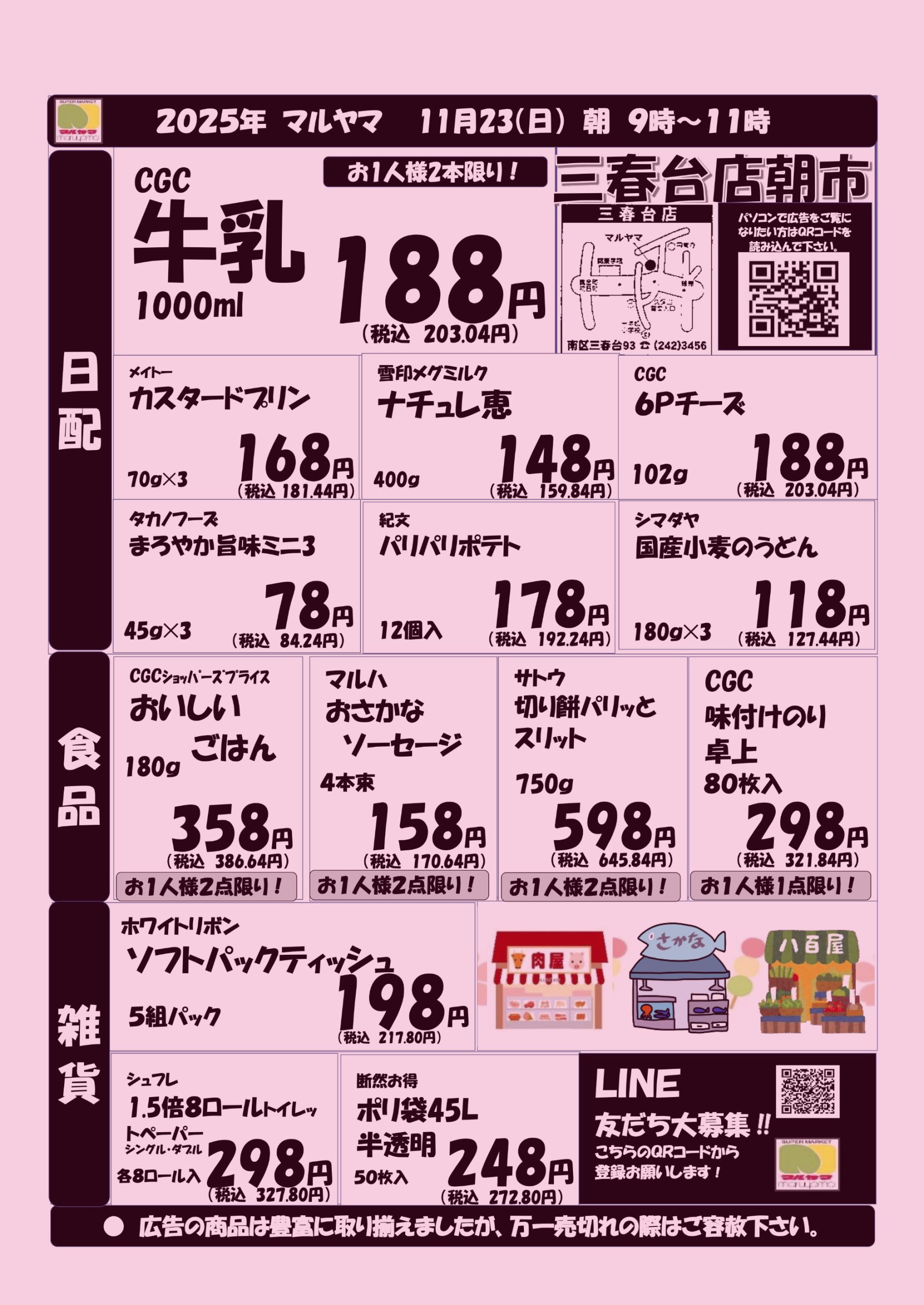 11/23 朝市 三春台店 9時~11時
