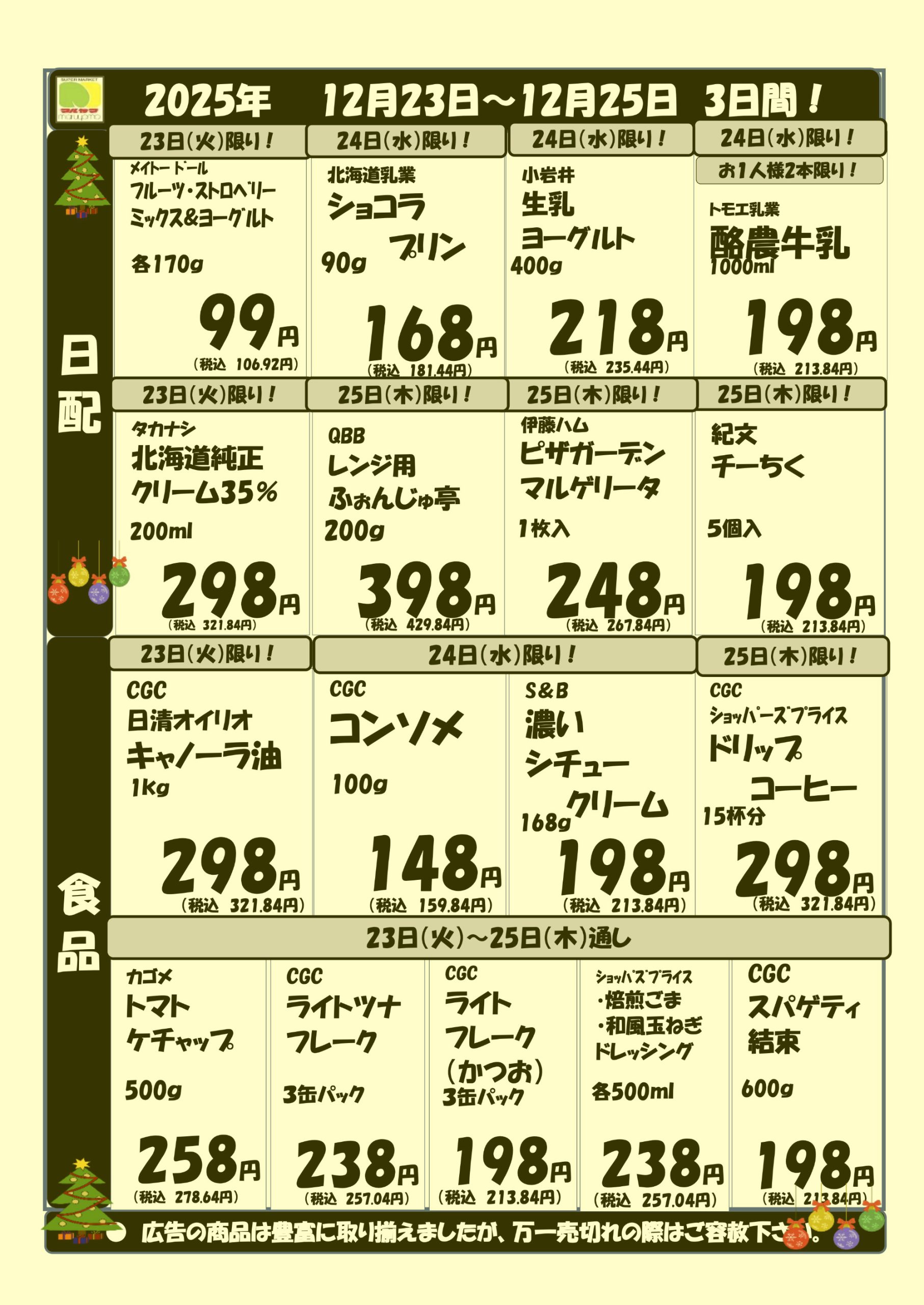 12/23~12/25 クリスマスセール スーパーマルヤマ